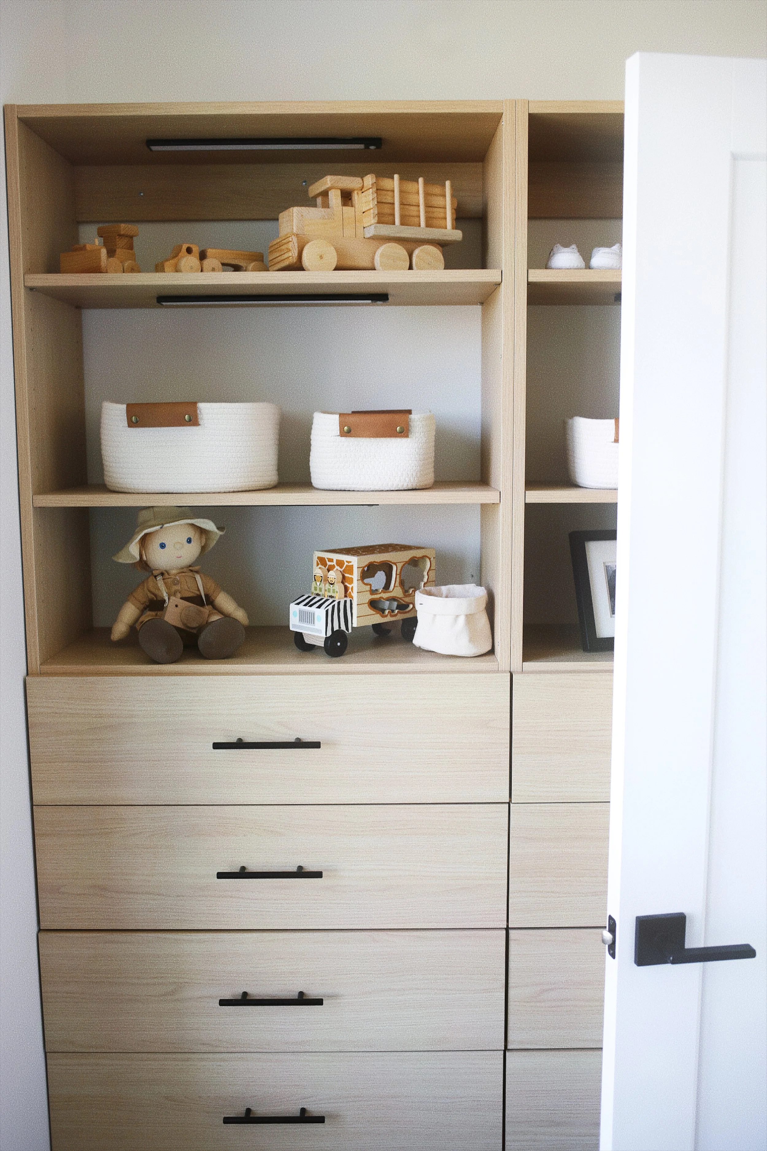 When we first started setting up Miles’ nursery, the closet was about as basic as it gets, just plain white melamine shelving. It worked fine for the moment, but I knew it wasn’t going to keep up with us long term, especially as Miles grows and his needs change. I wanted a space that was both functional and beautiful, something that would help us stay organized during these early years and continue to adapt as he gets older.